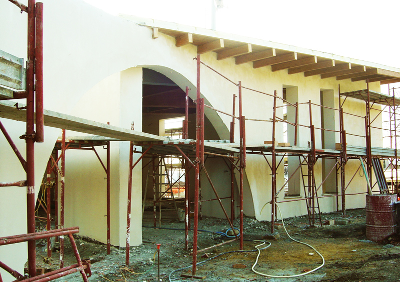The expressive power of the volume qualifying the space in the margin area between natural and urbanized offshoots: the valley, the building projects and opens with the front open like a fan, while the curved structure of the volume of distribution, engages the concave facade and sloping entrance, highlighted by the opening of a large arch facing the main access road and facing the street Campagnanese. The opposite side is alive instead of volumes and different geometries intended to services. The outer surface is colored light ocher approached to the light gray of the fixtures. On the front towards the valley, roofs soar to form with septa side of the building a continuous form that emphasizes the use of wood cover. The sloping line of the curved facade of the main entrance follows the slope of the roof of the volume of the hall and ends at the edge of the open space in a small garden "inside".