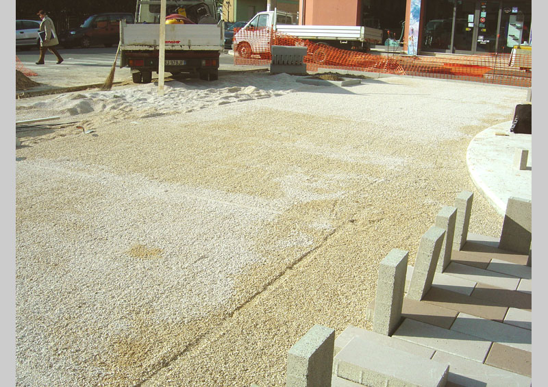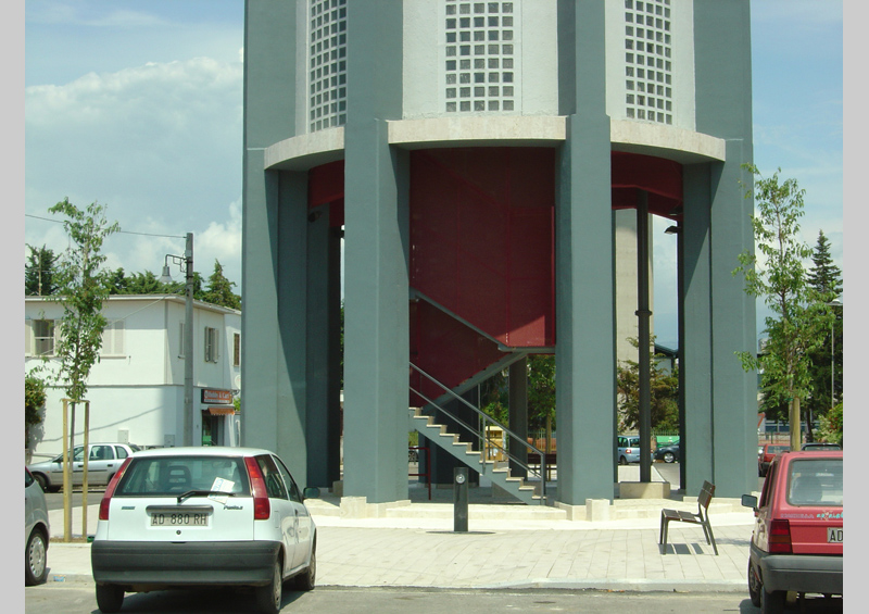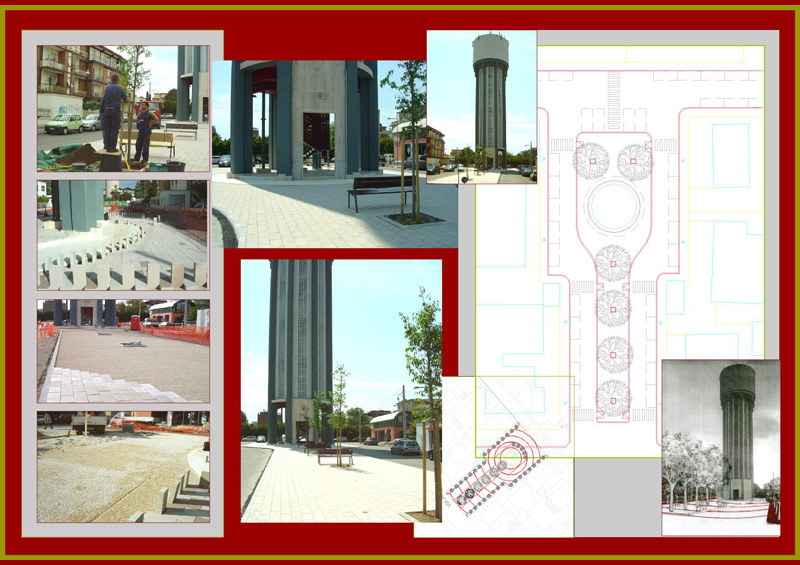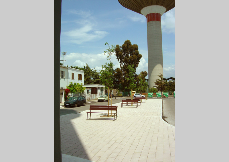 The process of urban renewal of the Largo Torre Acquedotto in an area bordering the town centre is to transform the street into an integral part of the area whilst conserving its use by cars. The axial planning due to the strong presence of the acqueduct tower suggested the introduction of a long pedestrian space at the centre of the area for cars by narrowing the lateral pavement.